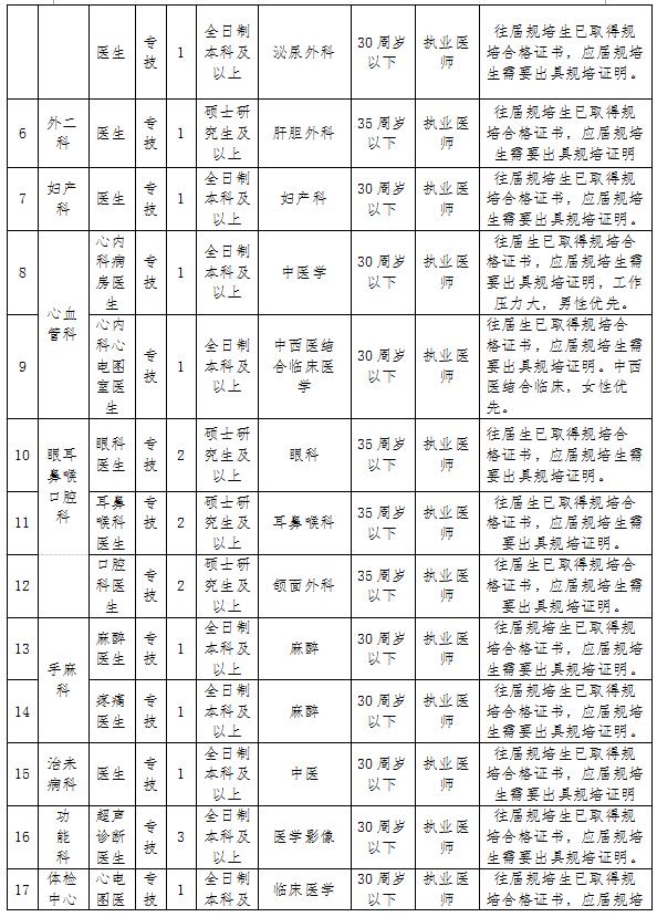 ??備注:1、2013年之前畢業(yè)的醫(yī)學(xué)和護(hù)理類應(yīng)聘者不要求規(guī)培證書。