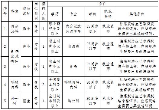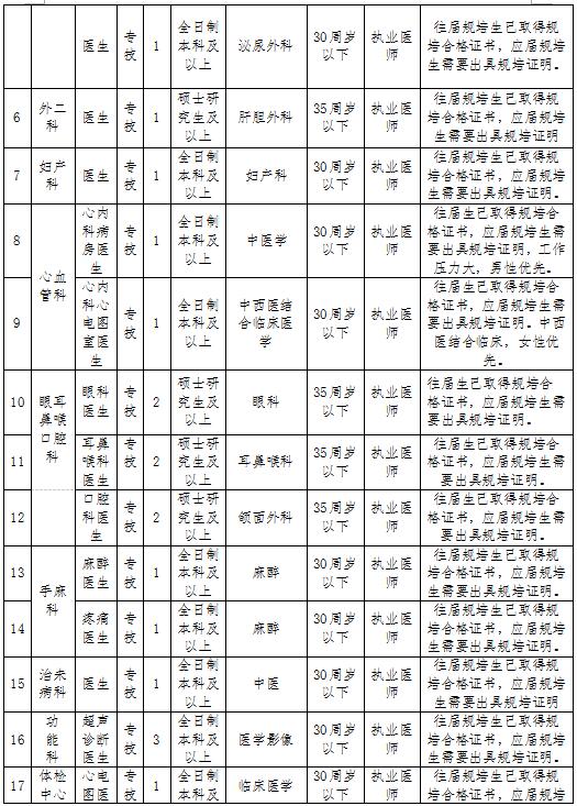 備注:1、2013年之前畢業(yè)的醫(yī)學和護理類應聘者不要求規(guī)培證書。