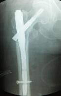 照片顯示骨折位置 運(yùn)用內(nèi)固定手術(shù)后