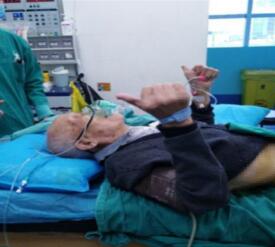 98歲高齡老人在手術(shù)臺(tái)上為醫(yī)生點(diǎn)贊