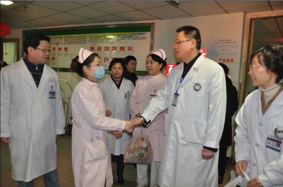 ??? ?2011年2月1日,值此新春佳節(jié)到來(lái)之際,瀘州市政協(xié)主席劉俊澤、副市長(zhǎng)梁偉華一行蒞臨我院,為醫(yī)院職工帶來(lái)了新年的問(wèn)候。