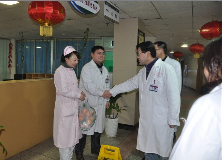 ??? 市領(lǐng)導(dǎo)一行結(jié)束了對(duì)我院職工的慰問(wèn)離開(kāi)以后,醫(yī)院黨委書(shū)記、院長(zhǎng)吳濱同志帶領(lǐng)醫(yī)院黨政工領(lǐng)導(dǎo)、職能科室中層干部,前往慰問(wèn)了臨床各科室職工。