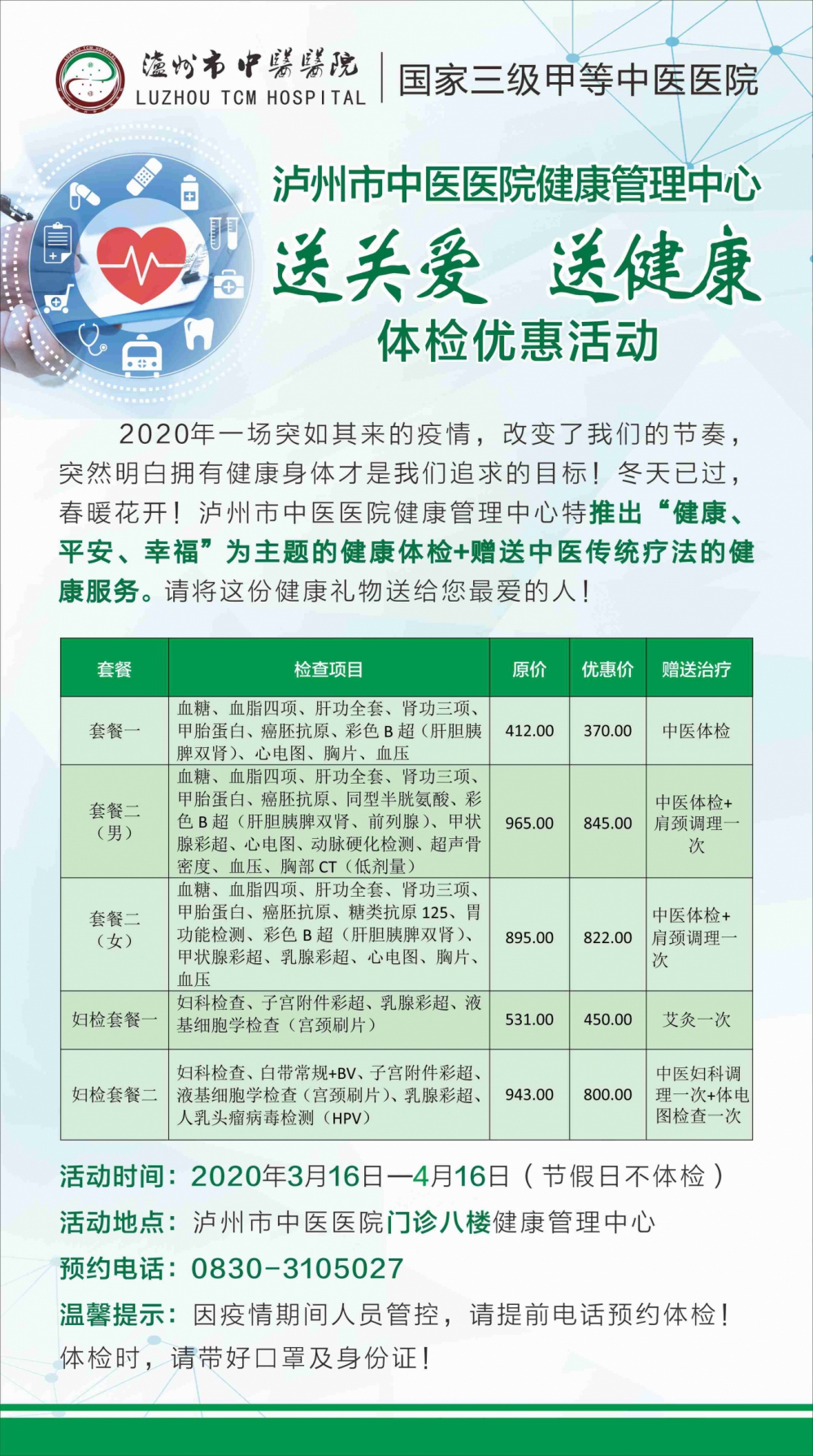 瀘州市中醫(yī)醫(yī)院健康管理中心 “送關(guān)愛(ài)、送健康”體檢優(yōu)惠活動(dòng)