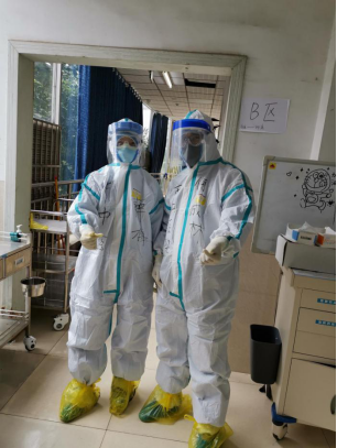 在平時(shí)看似簡(jiǎn)單的護(hù)理操作,在各種外在因素的影響下:護(hù)目鏡的氣霧、一層一層的手套、厚重的防護(hù)服等變成了技術(shù)難題,也讓我這個(gè)急性子必須沉住氣,不貿(mào)然行動(dòng),反復(fù)摸索,消除各種顧慮,以保證進(jìn)針后能一針見(jiàn)血。每次成功后的喜悅都讓我忘了全副武裝的行頭帶來(lái)的不適。防護(hù)服為我們醫(yī)護(hù)人員拉起防疫線、隔離病毒、是我們的生命保障。當(dāng)然,我也學(xué)著同事在防護(hù)服上寫(xiě)下自己的鼓勵(lì)與希望,我希望我的視線恢復(fù)清晰,我渴望我的工作服不再笨重,一切的堅(jiān)守只為一個(gè)目標(biāo),戰(zhàn)勝疫情,迎接春天的到來(lái)。