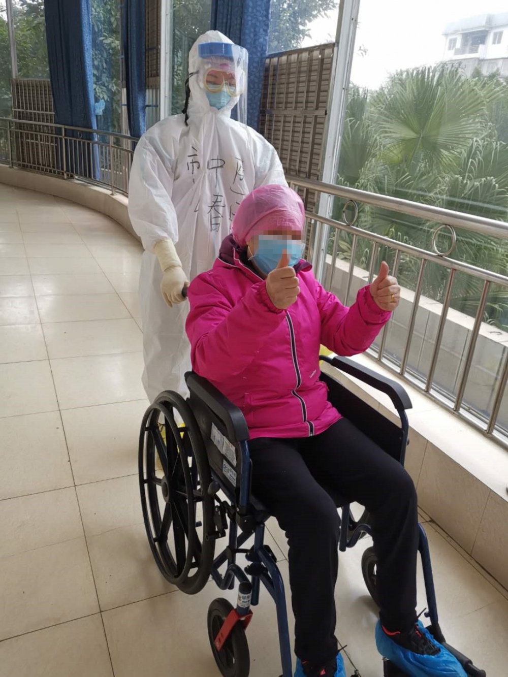 參加傳染病醫(yī)院救治工作是我個(gè)人的意愿,第一次臨戰(zhàn)卻顯得那樣的倉(cāng)促和狼狽。那是入艙工作第二天,接到通知轉(zhuǎn)診患者,在N95、護(hù)目鏡、面罩、隔離衣和防護(hù)服的層層包裹下,配合著毒辣的太陽(yáng),加上救護(hù)車(chē)密閉的空間,我在不到1個(gè)小時(shí)時(shí)間就開(kāi)始出現(xiàn)頭昏、惡心。就是在這種不堪下完成了4小時(shí)的轉(zhuǎn)診,之后就是第二次、第三次.....。我逐漸熟悉在這層層包裹下去接診、去查房、匯報(bào)病情,按指示完成救治,也學(xué)會(huì)了將組織給予的關(guān)心愛(ài)護(hù)傳遞給病人,也為病人康復(fù)出院由衷高興。