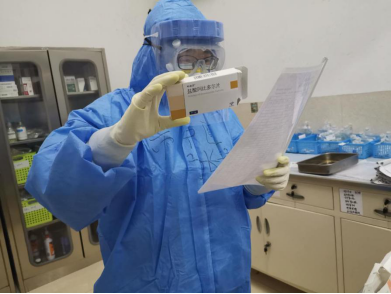 張靜在仔細(xì)核對(duì)醫(yī)囑,擺放口服藥
