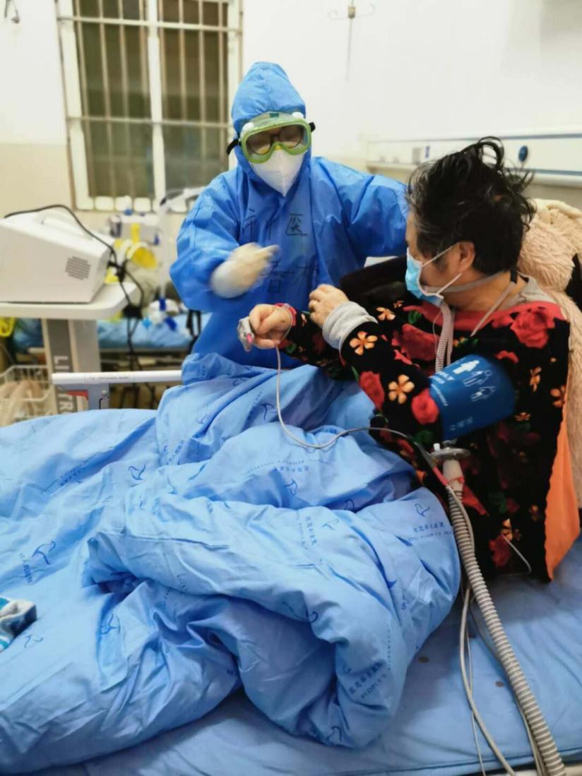“很模糊,看不清”這是我第一次進(jìn)艙穿上防護(hù)服,戴上護(hù)目鏡之后的感受。印象特別深的是為一個阿姨采血?dú)?,因?yàn)榇髦龑邮痔祝部床磺宄?,為患者采第一次時(shí)失敗了。當(dāng)時(shí)心里挺自責(zé)的,還沒等我道歉,阿姨就對我說:“小妹妹,沒關(guān)系,我看你眼鏡里面都是水汽,肯定看不清楚,我們換個地方抽”。就這么一句話,讓我們彼此心里都暖暖的。病毒無情,人間有愛,這場疫情,相信我們一定會戰(zhàn)勝它!