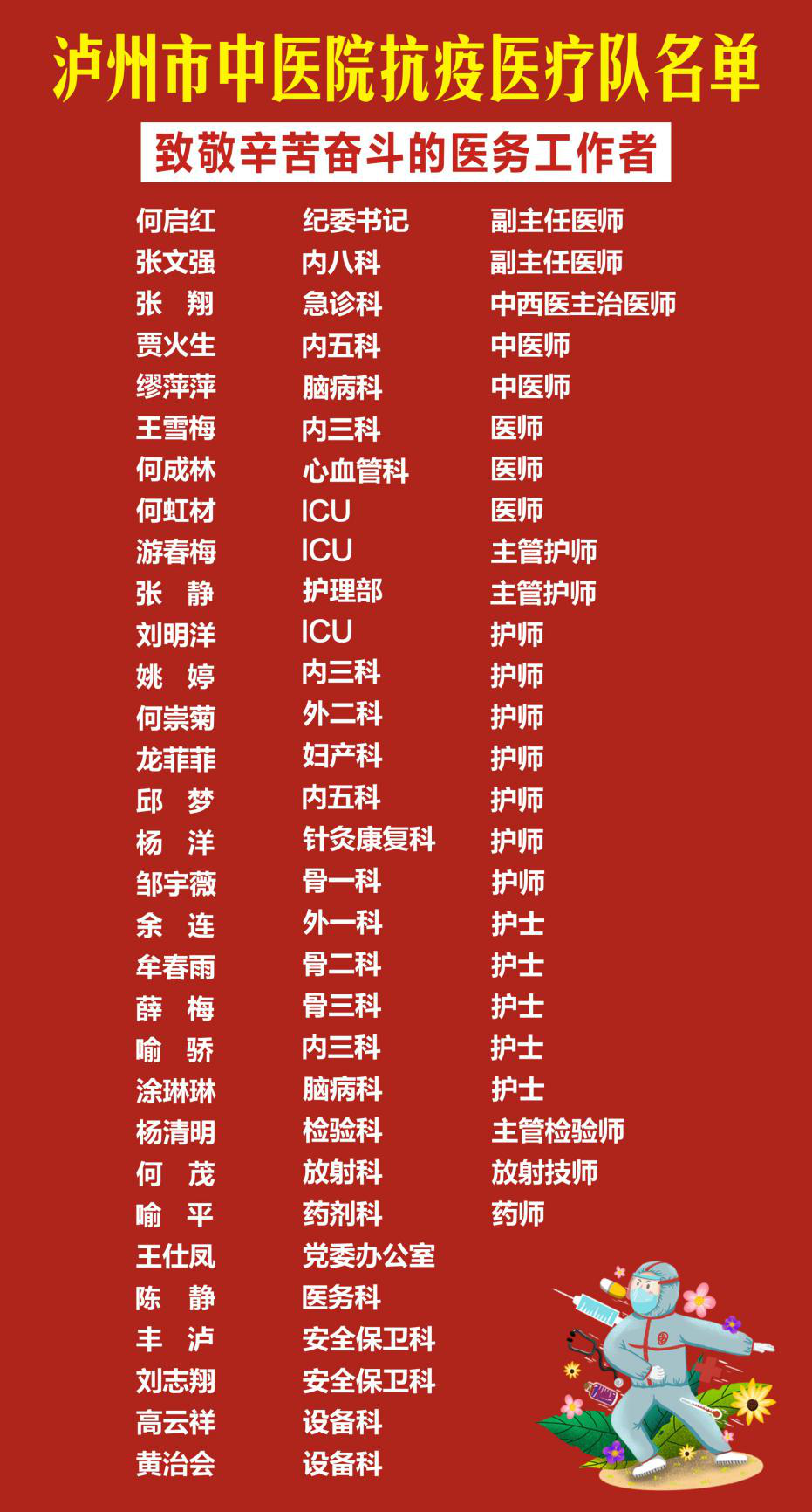 在當(dāng)前這場與新冠肺炎的戰(zhàn)“疫”中,瀘州市中醫(yī)院涌現(xiàn)出一批又一批為抗疫而努力付出的人。他們都是最平凡的人,但是在用著自己的平凡成就最偉大的事。讓我們跟隨逆行進(jìn)艙勇士們的文字一起看看他們在艙內(nèi)的抗疫故事。(排名不分先后)