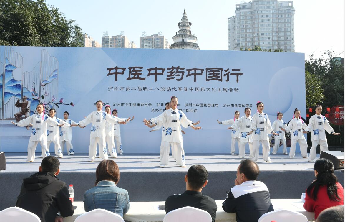 為弘揚中醫(yī)藥文化,普及市民的健康知識,11月10日上午,由瀘州市衛(wèi)生健康委員會、瀘州市總工會、瀘州市中醫(yī)藥管理局、瀘州市教育體育局主辦,瀘州市中醫(yī)醫(yī)院承辦的瀘州市第二屆職工八段錦比賽暨中醫(yī)藥文化主題活動在白塔廣場隆重舉行。