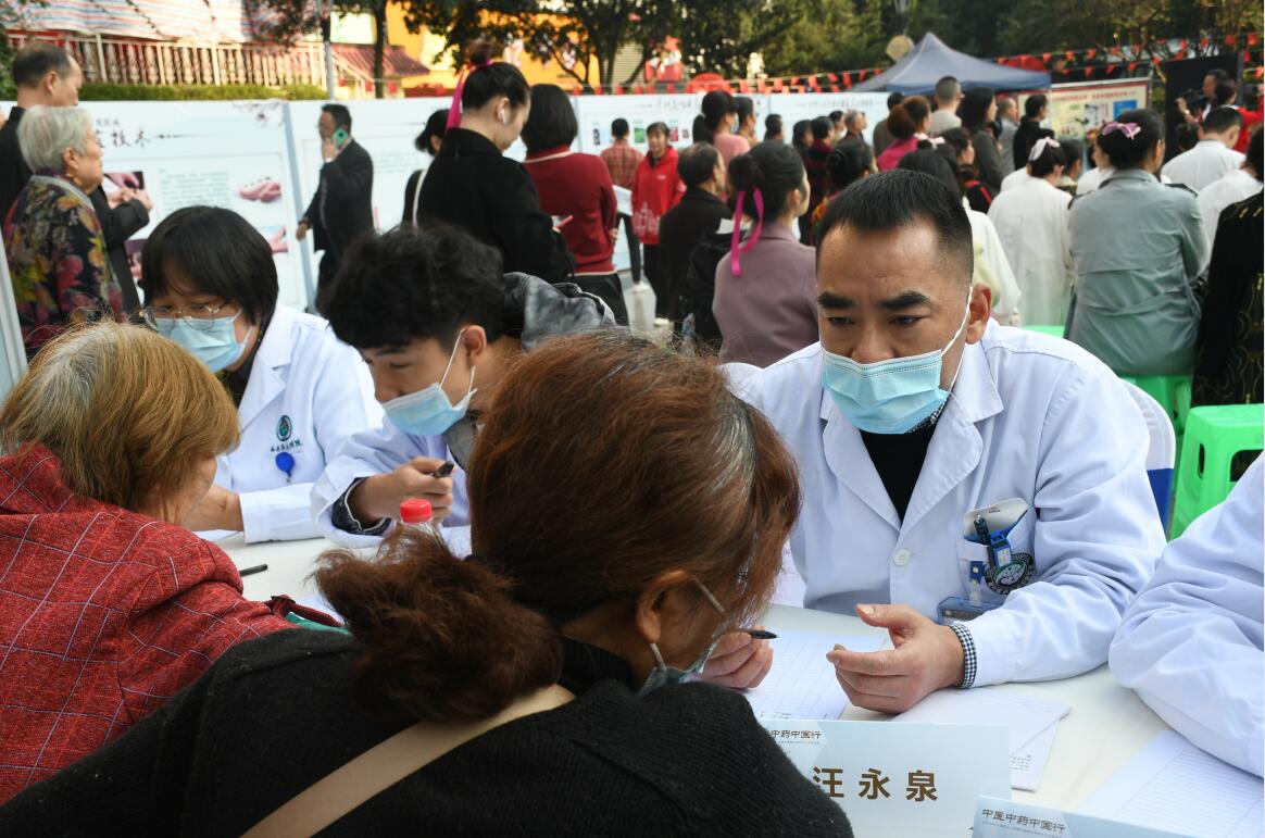 活動現(xiàn)場,除了有精彩的八段錦比賽,還有瀘州市第三屆名中醫(yī)在現(xiàn)場開展義診活動。義診現(xiàn)場異?;鸨?,幾個小時,就有150余人接受義診,89人次測量血壓。