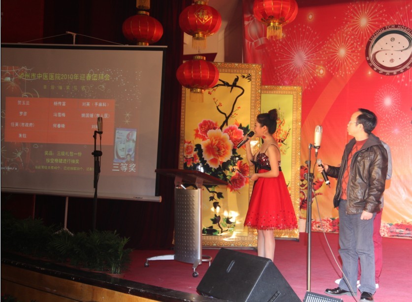 歡聲笑語(yǔ)沖云霄,相親相愛一家人。2010年1月26日下午, 我院全體員工歡聚一堂,在瀘州市南苑會(huì)議中心舉辦了2010年迎春團(tuán)拜會(huì)。瀘州市市委常委、副市長(zhǎng)石海龍,市政府副秘書長(zhǎng)任英,市衛(wèi)生局局長(zhǎng)康江等領(lǐng)導(dǎo)以及兄弟單位的領(lǐng)導(dǎo)親臨團(tuán)拜會(huì),觀看了這場(chǎng)醫(yī)院精心策劃、巧妙構(gòu)思、內(nèi)涵豐富的盛大視覺盛宴。