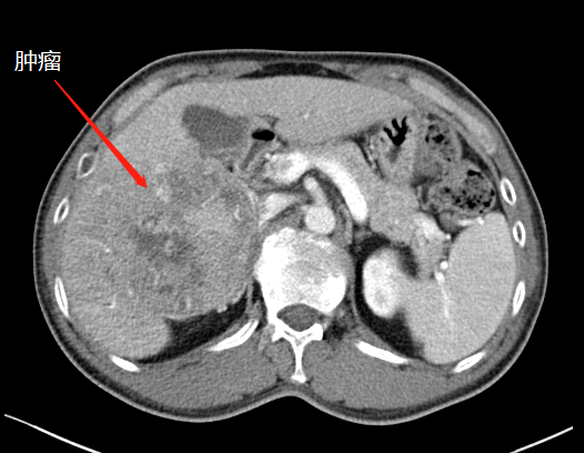 “該患者入院后,通過肝臟CT,我們發(fā)現(xiàn),由于其右肝腫瘤巨大,而正常的左肝體積比較小,手術(shù)預(yù)切除肝體積達(dá)70%以上,術(shù)后殘肝體積僅28.3%,再加上該患者存在乙肝和肝硬化,剩余肝臟不足以維持他身體正常運(yùn)轉(zhuǎn)所需,不具備肝臟手術(shù)切除的基本要求?!焙鷤ケ硎?。