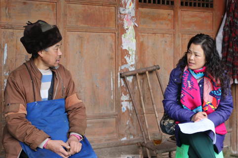 ?????????????? 我院副院長吳智惠(左1)正在了解貧困戶的家庭情況