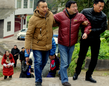由于道路的濕滑、車輛顛簸,我院副院長巫駿川同志不慎突發(fā)急性腰肌損傷,腰部疼痛、兩腿發(fā)麻,不能站立。但是,巫駿川執(zhí)意讓現(xiàn)場人員攙扶著走進困難戶家中,堅持幫扶工作。