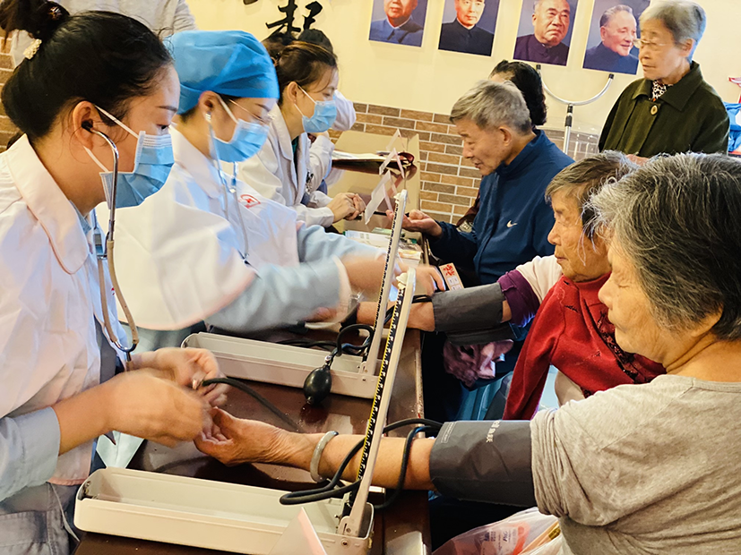 醫(yī)務(wù)人員為來到現(xiàn)場(chǎng)的居民進(jìn)行免費(fèi)查血壓、健康咨詢,還向他們贈(zèng)送中醫(yī)文化紀(jì)念品。義診活動(dòng)在融洽、歡樂的氛圍當(dāng)中進(jìn)行,隨后社區(qū)居民還一起合照、做游戲。