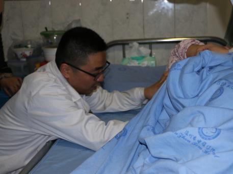 中午,劉宇文仔細(xì)察看患者傷處恢復(fù)情況