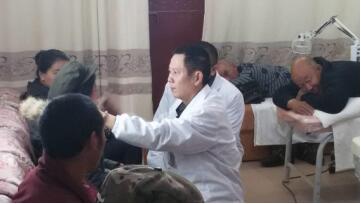 他是年齡最大的援藏人員,年逾半百三赴川西高原,對(duì)口支援四川甘孜藏族自治州西南邊陲的鄉(xiāng)城縣。在前后四年半的時(shí)間里,他牢記“援藏一期、造福一方”的神圣使命,以精湛的針灸、理療技術(shù),為當(dāng)?shù)財(cái)?shù)萬(wàn)名群眾解除疾苦,改善農(nóng)牧區(qū)醫(yī)療條件,被藏民親切地稱為“門(mén)巴雅古”(藏語(yǔ):好醫(yī)生)。應(yīng)當(dāng)?shù)卣蛷V大群眾的強(qiáng)烈呼聲,他一次次折返于這片神秘美麗的雪域圣地,留下了片片“針”情。