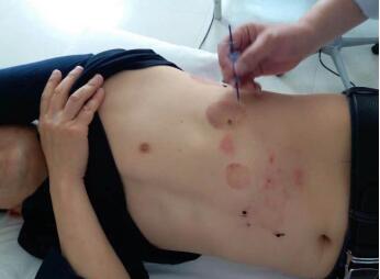 藏民洛絨澤仁身患帶狀皰疹半月左右,腰圍上長(zhǎng)了一圈水痘,疼痛難忍,經(jīng)周熙采用米粒灸治療后,控制了皰疹的發(fā)展,通過(guò)針刺夾脊穴緩解疼痛,治療一周后皰疹逐漸消失,疼痛也減輕不少,10天后痊愈。
