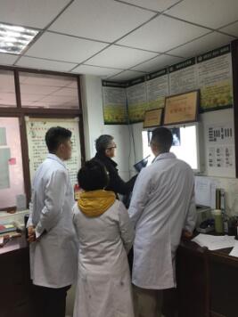 劉漢江(左一)帶領(lǐng)醫(yī)院領(lǐng)導(dǎo)人進(jìn)行質(zhì)控檢查
