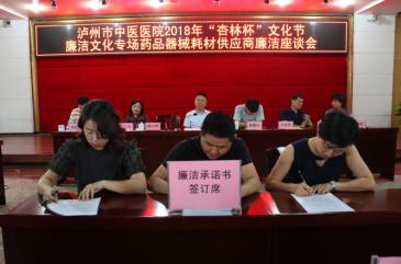 2018年5月29日下午,瀘州市中醫(yī)醫(yī)醫(yī)院在門診11樓學(xué)術(shù)廳召開藥品、器械、耗材供應(yīng)商廉潔座談會(huì),市衛(wèi)計(jì)委相關(guān)領(lǐng)導(dǎo)、我院全體領(lǐng)導(dǎo)班子成員、部分臨床科室中層干部、部分藥品器械耗材供應(yīng)商代表共60余人參加會(huì)議。