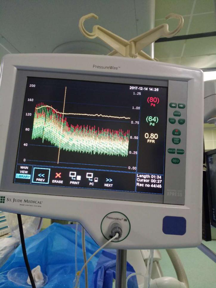 川南首例FFR(冠狀動脈內(nèi)壓力導絲直接測量血流儲備分數(shù))手術中