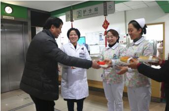 2018年2月15日上午,醫(yī)院副院長巫駿川、向能強代表醫(yī)院黨政領(lǐng)導(dǎo)班子率職能科室相關(guān)負(fù)責(zé)人,帶著濃濃的關(guān)懷和新春祝福,為年三十堅守崗位的職工送上甜甜的蛋糕。領(lǐng)導(dǎo)們與在崗職工一一握手,感謝大家放棄與家人團聚的美好時光,恪盡職守,為人民群眾的健康保駕護航。