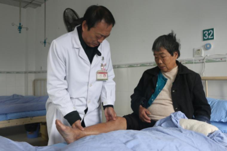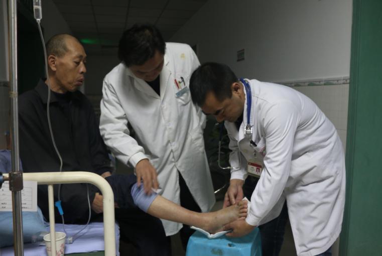 ?我院黨委委員、骨傷一科主任汪永泉(右一)正在查房