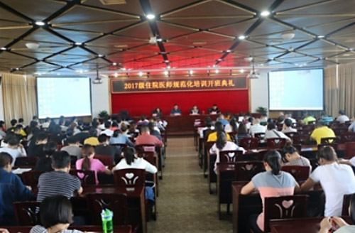 會上,醫(yī)院黨委書記、院長鄭海三簡要介紹了醫(yī)院住院醫(yī)師規(guī)范化培訓工作情況,滿懷深情寄語2017級新生,要做一名德才兼?zhèn)涞尼t(yī)學后備人才,并表示,規(guī)范化培訓是醫(yī)學人才成長的必由之路,目的是將醫(yī)學知識應用、臨床技能培訓、職業(yè)道德培養(yǎng)和溝通技巧訓練等眾多元素充分融合,讓學員們在臨床實踐的過程中不斷學習和提高。因此,為確保規(guī)范化培訓工作達到實效,鄭海三對全體參會人員提出了四點要求:一是明確職責,團結協(xié)作,確保整個住培工作順利進行;二是嚴格標準,科學管理,在培養(yǎng)學員的同時不斷提高本科室各方面水平;三是言傳身教,甘為綠葉,要嚴格、科學、規(guī)范的做好傳、幫、帶工作;四是嚴守規(guī)矩,刻苦學習,每一位規(guī)陪學員都在完成規(guī)陪任務的同時,要爭取成為一名德才兼?zhèn)涞尼t(yī)學后備人才。