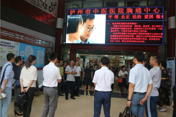 9月27日上午,各省屬醫(yī)院、瀘州市各區(qū)縣衛(wèi)計局、市直屬醫(yī)療單位的紀檢、監(jiān)察室領導共計四十余人蒞臨瀘州市中醫(yī)醫(yī)院,現(xiàn)場參觀醫(yī)院黨風廉政建設社會評價和整治“微腐敗”工作宣傳情況。我院黨委書記、院長鄭海三,黨委副書記王萬芳及相關職能科室人員陪同。