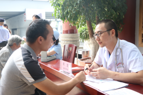 活動現(xiàn)場,我院骨傷一科、心血管內(nèi)科、腦病科、內(nèi)八科(腎病科)、內(nèi)三科(肺病科)、脾胃病科等??漆t(yī)生為廣大市民把脈義診。“醫(yī)生,我經(jīng)常頭暈,是不是高血壓啊?”“醫(yī)生我心跳很快,是不是心律失常?”前來咨詢的市民絡繹不絕,義診醫(yī)生們對每一位就診市民都仔細檢查、診斷,認真耐心地解答各種疑難問題,介紹防病保健知識,并提出合理的膳食、運動等建議。參與活動的護士們熱情地為市民免費測量血壓。?