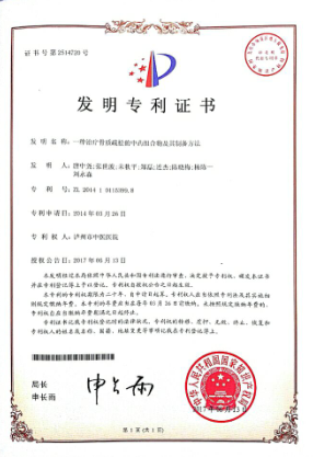 近日,我院自主研發(fā)的“一種治療骨質(zhì)疏松的中藥組合物及其制備方法”被國(guó)家知識(shí)產(chǎn)權(quán)局授予發(fā)明專利證書。這是我院獲得的首項(xiàng)發(fā)明專利,我院骨傷科大科主任唐中堯?yàn)樵搶@芯康呢?fù)責(zé)人。該成果明確了該組方的制備工藝,為骨質(zhì)疏松患者提供了一種新的治療方法。