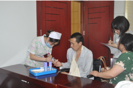 活動(dòng)現(xiàn)場,護(hù)士為前來聆聽講座的“糖友”們測血糖。醫(yī)院大內(nèi)科護(hù)士長羅永萍為大家講解關(guān)于糖尿病中醫(yī)飲食的相關(guān)知識(shí),包括糖尿病患者的飲食管理、生活中的注意事項(xiàng)等內(nèi)容。對(duì)一些需要大家了解和注意的知識(shí)點(diǎn),羅護(hù)士長列舉事例、反復(fù)強(qiáng)調(diào)引起大家重視,深入淺出、形象生動(dòng)的講解贏得現(xiàn)場陣陣掌聲。