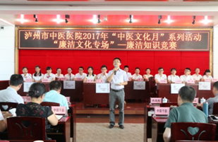 為進(jìn)一步加強(qiáng)醫(yī)院黨風(fēng)廉潔建設(shè)和醫(yī)德醫(yī)風(fēng)建設(shè),2017年5月27日下午,我院在門診11樓學(xué)術(shù)廳開展 “中醫(yī)文化月”系列活動:“廉潔文化專場”——廉潔知識競賽,市衛(wèi)生計生委監(jiān)察室主任稅昌海到場指導(dǎo)。醫(yī)院全體中層以上領(lǐng)導(dǎo)干部、全體黨員參加了此次活動。