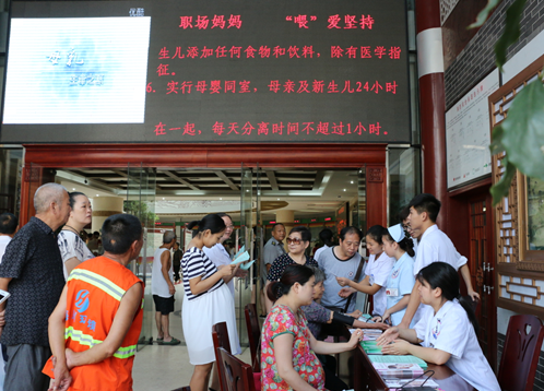 ????我院除開展現(xiàn)場咨詢、宣教及免費測血壓活動以外,還播放了母乳喂養(yǎng)知識宣講視頻及發(fā)放宣教單152份。作為愛嬰醫(yī)院,我院設(shè)置了專門的哺乳室,并設(shè)有專門的母乳喂養(yǎng)宣教措施。此外,在每個月的最后一周上午9點該院婦產(chǎn)科還在門診11樓學術(shù)報告廳開展孕婦學校為媽媽們宣講母乳喂養(yǎng)相關(guān)知識。