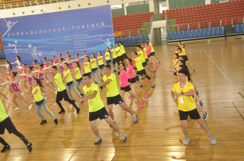 ?? 7月22日,由市人民政府主辦,市文體新廣局、市直機(jī)關(guān)工委、市體育局、市總工會(huì)承辦的瀘州市第七屆運(yùn)動(dòng)會(huì)系統(tǒng)組青少年組健美操比賽在市城北體育館舉行,我院派出12人組成的代表隊(duì)參加了此次比賽。