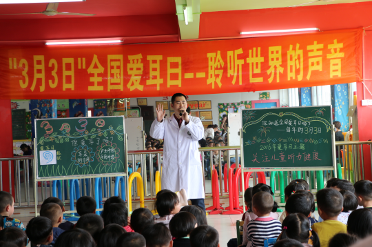 ??? 大風(fēng)車(chē)幼兒園的園長(zhǎng)張洪霞介紹:“這次‘愛(ài)耳日’幼兒園在前期就給孩子們上了很多關(guān)于耳朵保健的趣味課,孩子們也懂得了不少。但是我們依舊比較擔(dān)心孩子們的耳朵健康,有些孩子太小,會(huì)把小珠子等玩具放到耳朵里,我們發(fā)現(xiàn)過(guò)很多次,也高度警惕,經(jīng)常檢查,這次專家來(lái)講課,再加上日常的灌輸,孩子們也增長(zhǎng)了不少知識(shí)。