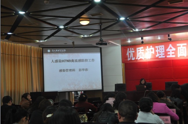 ??? 為了加深醫(yī)院職工對(duì)H7N9禽流感的認(rèn)識(shí),做好相關(guān)的防控工作,2013年4月11日,市中醫(yī)醫(yī)院在學(xué)術(shù)報(bào)告廳舉辦了“H7N9禽流感防控應(yīng)急對(duì)策”?知識(shí)講座。放射科主任孟世平、內(nèi)三科主任李玉梅、檢驗(yàn)科主任邱厚兵、院感科科長(zhǎng)彭華莎分別從H7N9的影像表現(xiàn)、診療方案、病毒標(biāo)本的采集、保存與檢測(cè)以及防控...